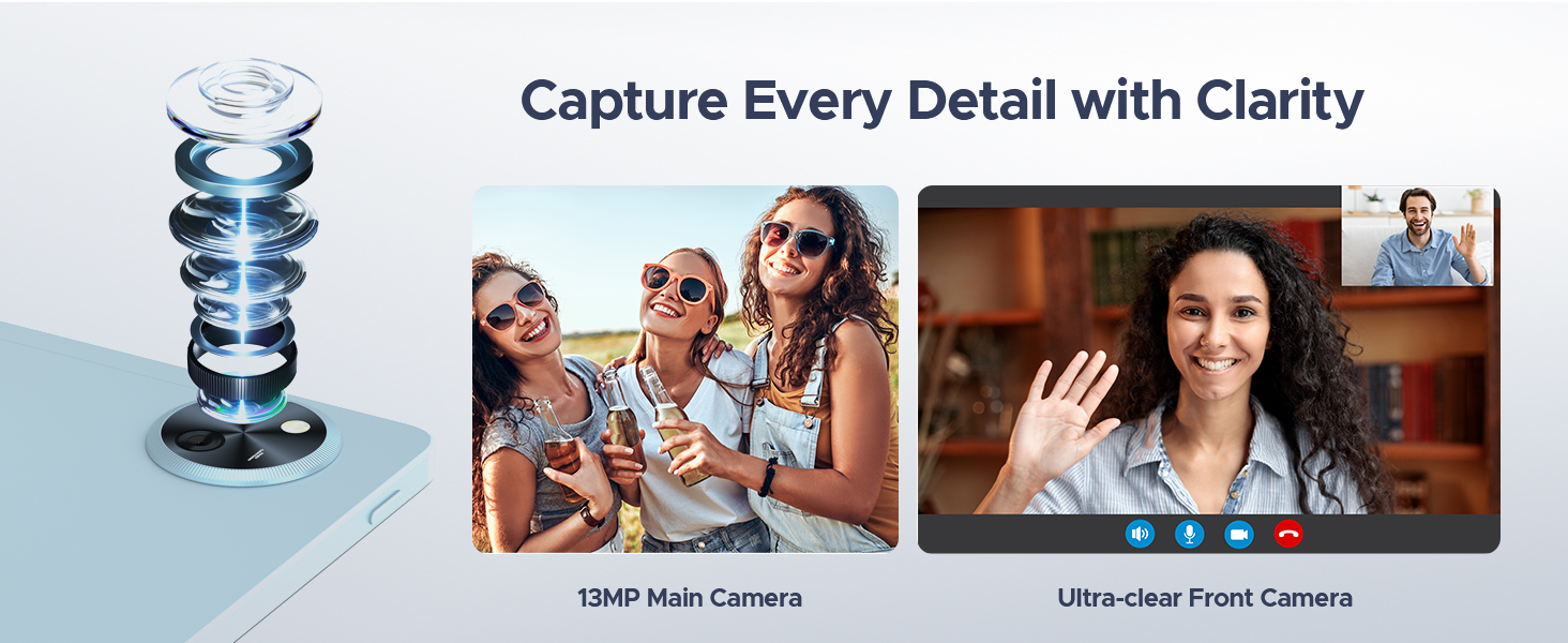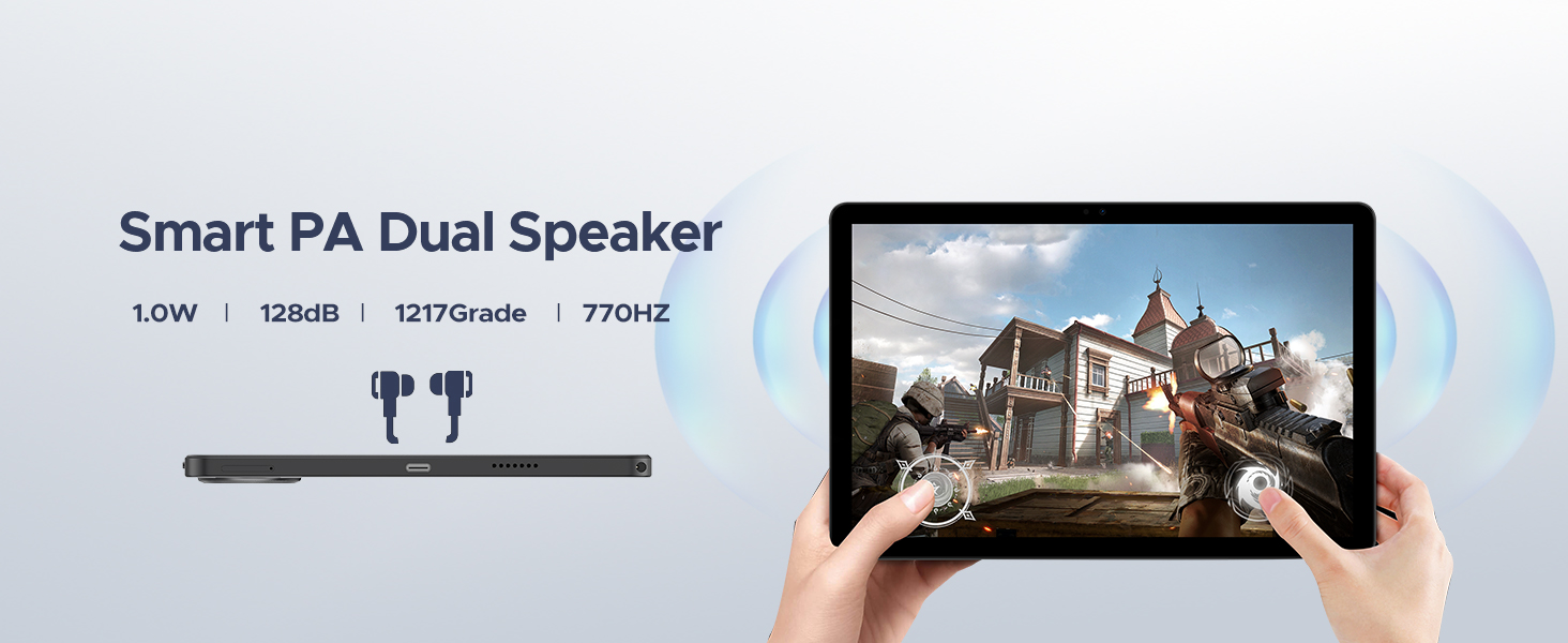 - 【Ear and visual enjoyment】 DOOGEE U11 gaming tablet is equipped with professionally tuned dual speakers to ensure clear and loud sound. It also enables clearer communication and reduces background noise during video calls. This Android 15 tablet also supports face unlock and combined with a 5MP front camera and 13MP rear camera, you can be the perfect ally for taking selfies, enjoying video chats with friends, photographing and sharing great moments with family and friends, and seamlessly participating in productive online meetings with colleagues.