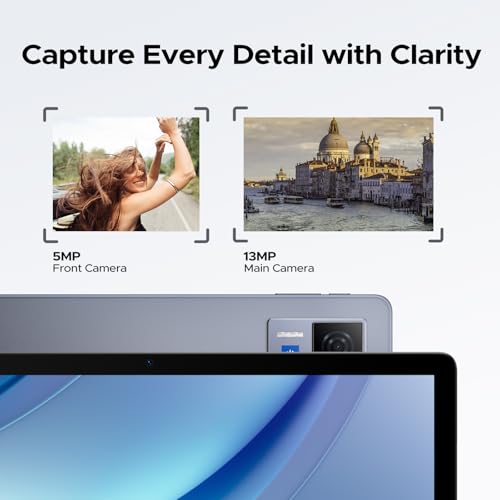 - 【Clear Cameras and a Complete Package Enhance the Android Tablet Experience】 The U13 tablet is fitted with a 13MP main camera and a 5MP front camera, ensuring you can capture every moment with remarkable clarity, whether it’s scenic landscapes or memorable selfies. What’s more, the package that comes with this Android tablet is comprehensive, including a tablet with keyboard, a mouse, and other essential accessories. These additions significantly boost the tablet’s usability, allowing you to transform it into a productive workstation or enjoy a more convenient and enhanced user experience right out of the box.