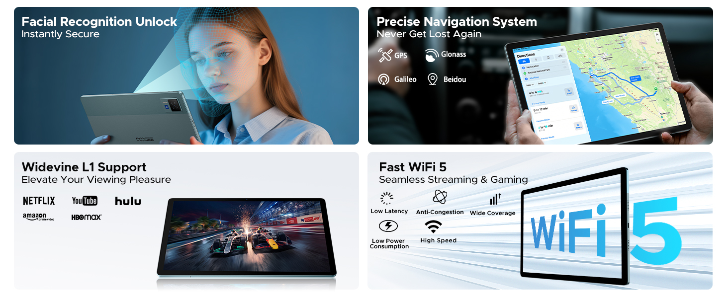 - ✈️【Metal Design & Built-in Gemini AI】Experience a blend of elegance and intelligence with this tablet android. It features a sleek 7.5mm metal body, a 13MP main camera for clear photos, and secure face unlock. With Widevine L1, stream HD content perfectly. Enhanced by built-in Gemini AI, this DOOGEE tablet assists with tasks like content creation and image analysis, making the 13 inch tablet a truly smart companion for both work and life.