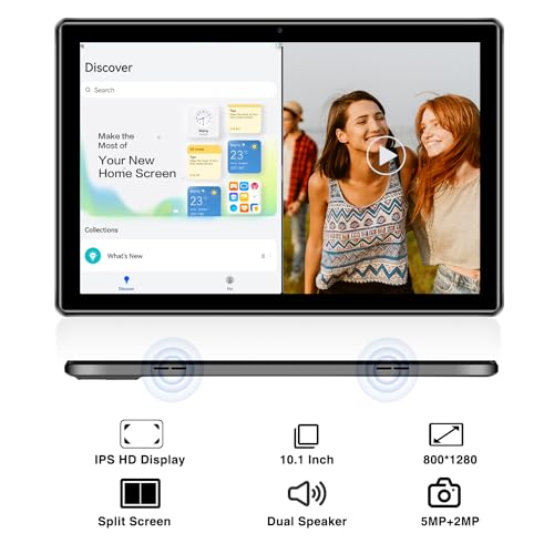 - 【All-new 10.1'' HD Touchscreen】 Vivid 10.1-inch tablet, 1280*800 IPS HD touchscreen, bright display with more vibrant colors, superb picture quality. Supports wireless projection and is equipped with dual cameras (rear 5MP camera) & stereo speakers. Gives you an outstanding audiovisual experience.