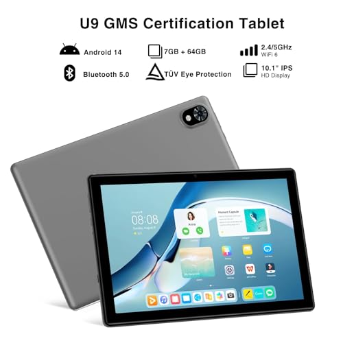 DOOGEE U9 10 inch Tablet Android Tablets 2025 Newest 7GB RAM 64GB ROM 1TB TF, Bluetooth 5.0 WIFI Tablets, 5060mAh Battery 1280×800 HD IPS Screen, OTG, Type C, 3.5mm Tablet 10 inch Android – Gray