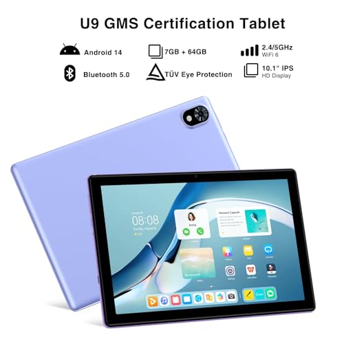 DOOGEE U9 10 inch Tablet Android Tablets 2025 Newest 7GB RAM 64GB ROM 1TB TF, Bluetooth 5.0 WIFI Tablets, 5060mAh Battery 1280×800 HD IPS Screen, OTG, Type C, 3.5mm Tablet 10 inch Android – Purple
