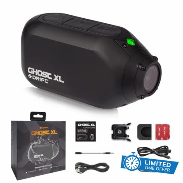 Ghost XL combines Drift's signature aerodynamic action camera form with Dash Cam safety features to capture weekend adventures and keep you covered on the commute.