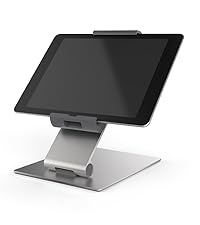 - ADJUSTABLE – The tablet clamp stand securely holds most 7 to 13 inch tablets. It can also be rotated 360°, with snap-in portrait and landscape modes and a tilt angle of -6° to +46°