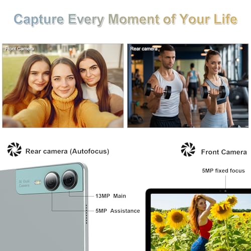 - HD Cameras & Immersive Audio Capture impressive photos and videos with the main 13MP and 5MP rear cameras, with auto focus for clear shots even in low light conditions. The front camera with 5MP is ideal for selfies and video calls. Together with four premium magnetic box speakers, the tablet provides an exceptional audio experience that enhances your multimedia enjoyment