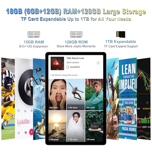 - POWERFUL PERFORMANCE WITH LARGE MEMORY Powered by the Unisoc T616 Octa-Core 2.0GHz processor, along with 18GB (6GB + 12GB expansion) RAM and 128GB ROM that support TF card expansion up to 1TB, this tablet effortlessly meets the requirements of multitasking and storage