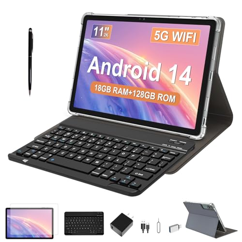 FESABOLE 2025 Android 14 Tablet 11 Inch, 18GB RAM, 128GB ROM, 1TB Expansion, 2K Display, T616 Octa-Core, 5G WiFi, 13MP + 5MP + 5MP, GPS, 9000mAh, Tablet with