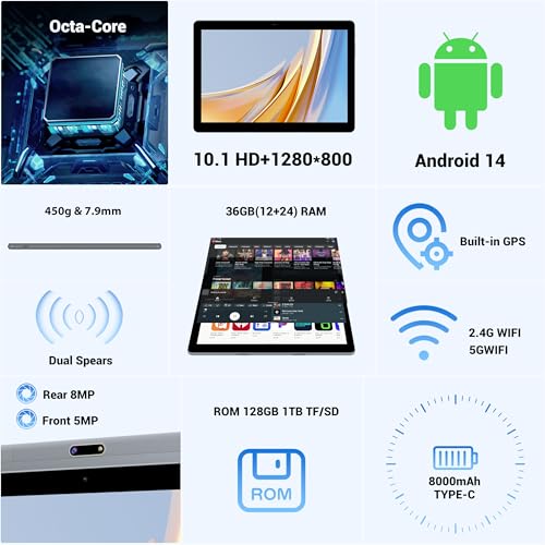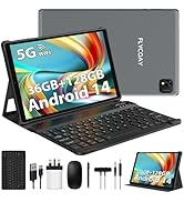 FLYCOAY Tablet 10 Inch 2025 Android 14 Octa-Core 2.0GHz,5G WIFI 6/ 36GB RAM+128GB ROM (TF 1TB), 8000mAh Battery/WLAN/OTG/BT 5.0, Widevine L1, Tablet With Keyboard,Case(Gray)