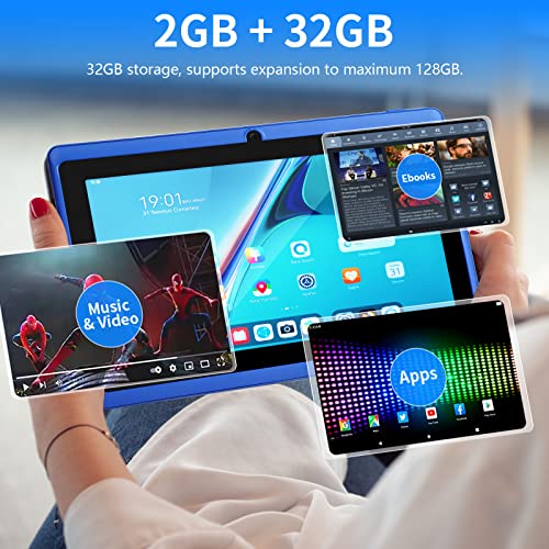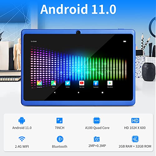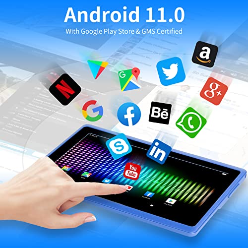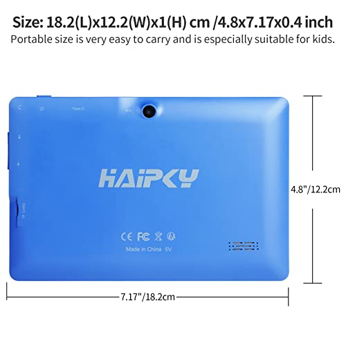 haipky 7 Inch Android 11 Tablet PC, 2GB RAM+32GB ROM, Quad Core, Dual Cameras, 1024×600 HD Screen, WiFi, Bluetooth, GMS, Gift for Adult & Kids (Blue)