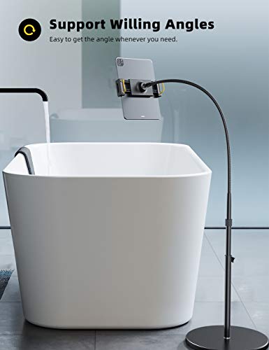 - 【Wide Compatibility】 Upgrade clamp part of this tablet floor holder makes it fit devices from 4.7 to 12.9 inches, including 2022 iPad Pro 12.9, iPad Pro 11, iPad Pro 10.5, iPad Pro 9.7, iPad 10.2, iPad Air 4, 3, 2, iPad Air, iPad mini 6, 5, 4, 3, 2; iPad 10, 9, 8, 7, 6, 5; Accessories, Samsung Tab, Switch, Surface Pro, Pixel C, Nexus 7 9, Tab E 4, iPhone 16 15, 14, 13, 12 Pro/Max/Plus/Mini, 11 Pro, Max, XR, XS, X, 8, 7 plus, 6s and other smartphones and tablets.