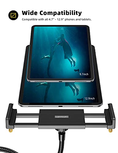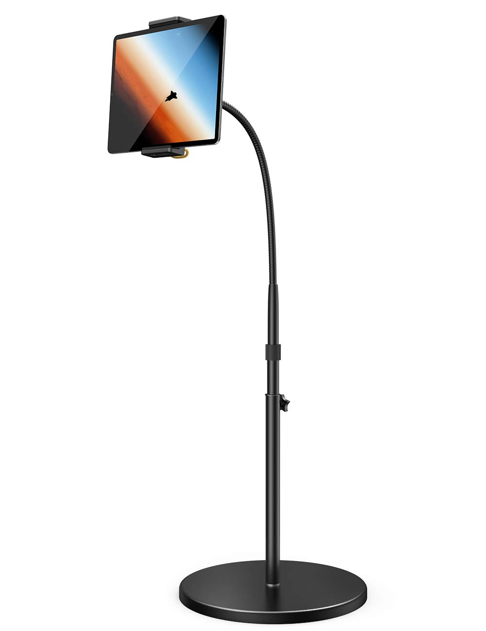 Lamicall Tablet Holder – Gooseneck Mount with Adjustable Height(130-160CM) & Stable Base, for iPad Pro 12.9, 10.5, 9.7, iPad Air, mini 6 5 4 3, 4.7”-13” Tablet – Black