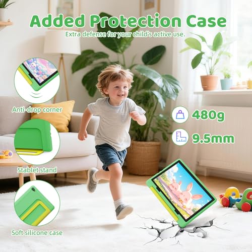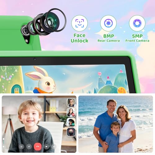 Laptok 10 Inch Kids Tablet, Android 14 Tablet for Kids With 14GB+64GB+1TB Expandable, Octa-Core Processor, Face ID, 5MP+8MP, 5000mAh, Parental Control, 5G WiFi 6, BT 5.3, Protective Case, Gree