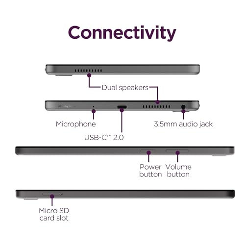 The Lenovo Tab One offers the perfect combination of portability, performance, and adaptability so you can be fully prepared for all-day fun! It’s palm sized and weighs under a pound for easy carry. The 8.7” HD display is housed in a smooth, rounded chassis with a modern design. Indulge in crisp visuals that are perfect for streaming, reading, and watching your favorite movies. The 480 nits of brightness ensure sharp visuals and rich colors that pop with a 86% screen ratio. Expect clear stereo sound from dual speakers tuned by Dolby Atmos that create an immersive audial experience. Stay engaged with up to 12.5 hours of unplugged YouTube streaming to support your all-day entertainment. The multi-day battery life is is supported by even faster charging capabilities so you can spend less time tethered to the power outlet when you do need to top up. Enjoy smooth gaming, streaming, and browsing with the MediaTek Helio G85 processor paired with a zippy 60Hz refresh rate. The Lenovo Tab One is fun for the whole family with a built-in kid’s mode via Google Kids Space and easy-to-use parental controls through Family Link. Choose from thousands of teacher-approved apps on Google Play and oodles of videos and books from YouTube Kids. Take your portable media center anywhere stress-free with the included Folio case. The Lenovo Tab One is your answer to unlocked all-day entertainment for those whose life is always on-the-go.