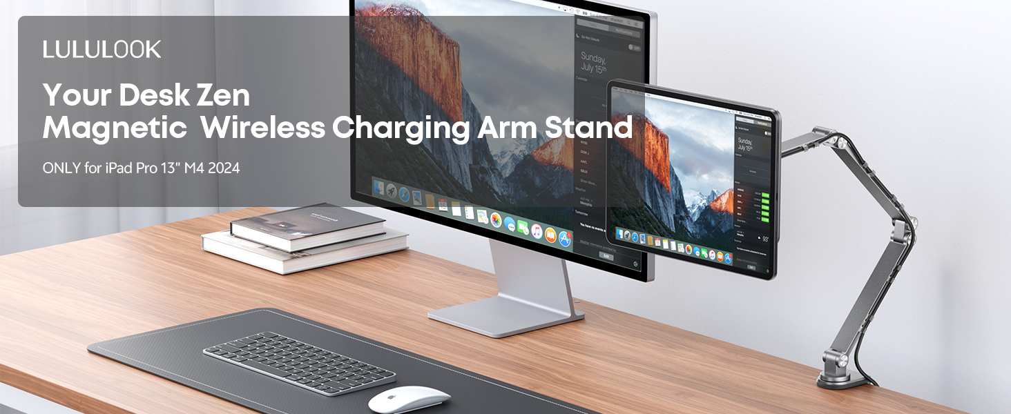 LULULOOK Magnetic Charging Stand Only for iPad Pro 13 inch M4(2024), Aluminum Alloy Arm Adjustable Tablet for Kitchen Office Desk Stand Mount Clamp for iPad Pro 13'' M4