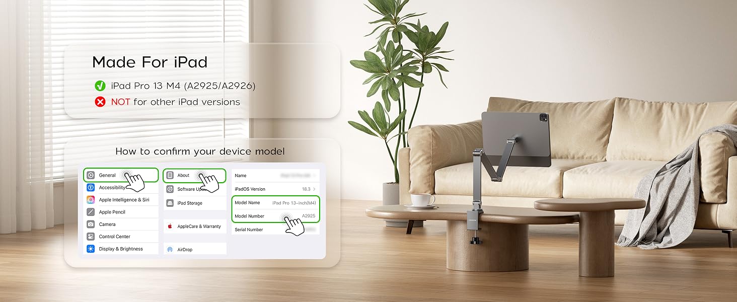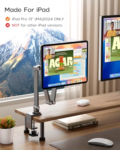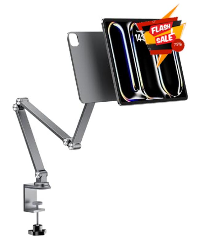 - Rock Steady Always: Extensively tested, precision-tuned damping joints lock your iPad without shifting—zero bounce, drift, or wobbles—while dual-textured silicone pads dual-defend with vice-like grip on any surface + scratch-proof cushioning, eliminating slips and desk damage. **Stiff to adjust? Safety design.Grip both joints with both hands to adjust (Fig.7) **
