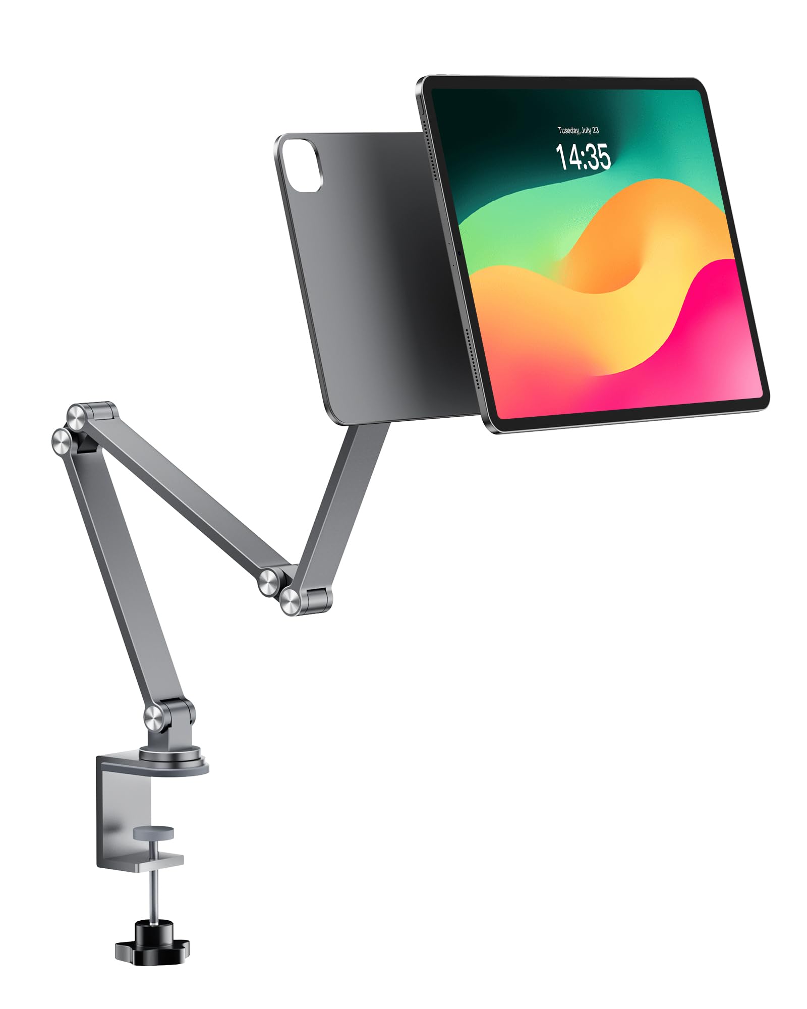 - Engineered for Total Control: Bend joints to sketch flush at 25° tilt, or extend to 65cm for standing workflows. Our 4-joint iPad arm mount system delivers precision rotation and tilt—perfect for drafting, streaming, or collaborating. Collapses into compact form for space efficiency. Minimal mechanics, maximum versatility—wherever your iPad creates