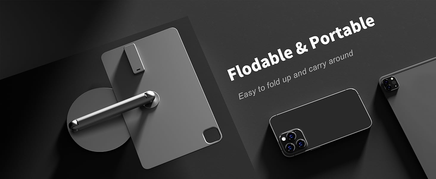 - 【STABILITY & HIGH STURDY】Our tablet desk stand is made of high quality aluminum alloy with high strength and 5mm protective thickness for a long service life that lasts for age. With the updated base, it is enough to support the weight of your iPad, and the non-slip silicone feet on the bottom greatly improve the stability of the stand. In addition, this stand can be folded flat for easy storage.
