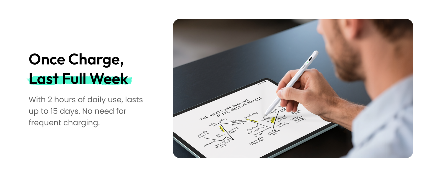 - 【20H Battery Life, 2X Fast Charge】: iPad Pencil Air 8 Pro fully charges in 45 minutes and lasts up to 20 hours. 2-min charge = 2-hour use. iPad Pencil Air 8 Pro delivers market-leading battery life and fast charging performance. No battery anxiety. (NOTE: Charges via USB-C to C cable. NO magnetic attachment. Includes an adhesive pen holder for easy storage on your iPad case.)