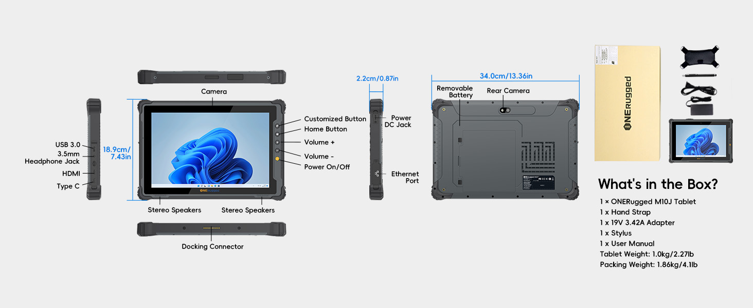 The ONERugged M10J Rugged Tablet is built to withstand tough environments and rough handling. With its durable design, this tablet is perfect for outdoor adventures and demanding work settings, while also offering the flexibility of a versatile device for everyday use.