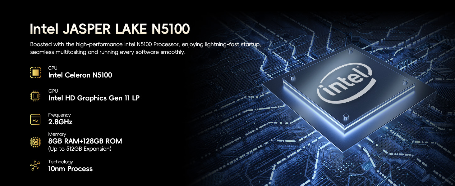 Equipped with an Intel N5100 CPU, 8GB RAM+128GB ROM/512GB TF Card storage, and a pre-installed Windows 11 Pro OS, the M10J brings greater computing and GPU performance with reduced power consumption, ideal for situations where complex tasks require blistering speed.