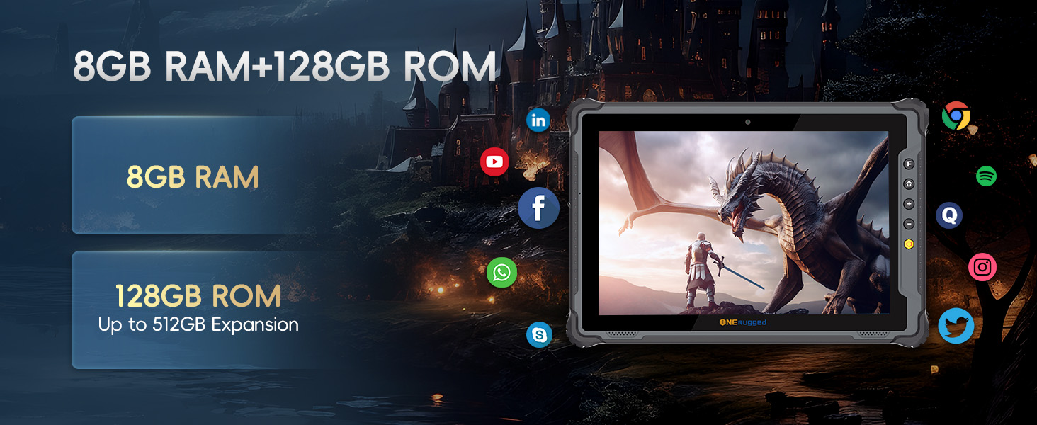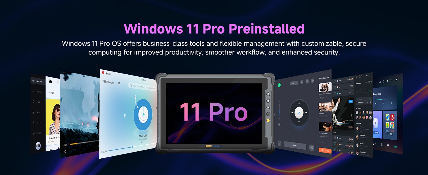 - [ Intel N5100 CPU, 8GB RAM+128GB ROM/512GB TF ] – The ONERugged heavy duty tablet is equipped with an upgraded Windows 11 Pro OS and adopts a 2.8GHz high-speed Jasper Lake N5100 processor, delivering stable and efficient performance even while multitasking. With 8GB RAM+ 128GB ROM and 512GB TF card expandable storage space, you'll have ample space for storing documents, videos and apps and processing large software applications.