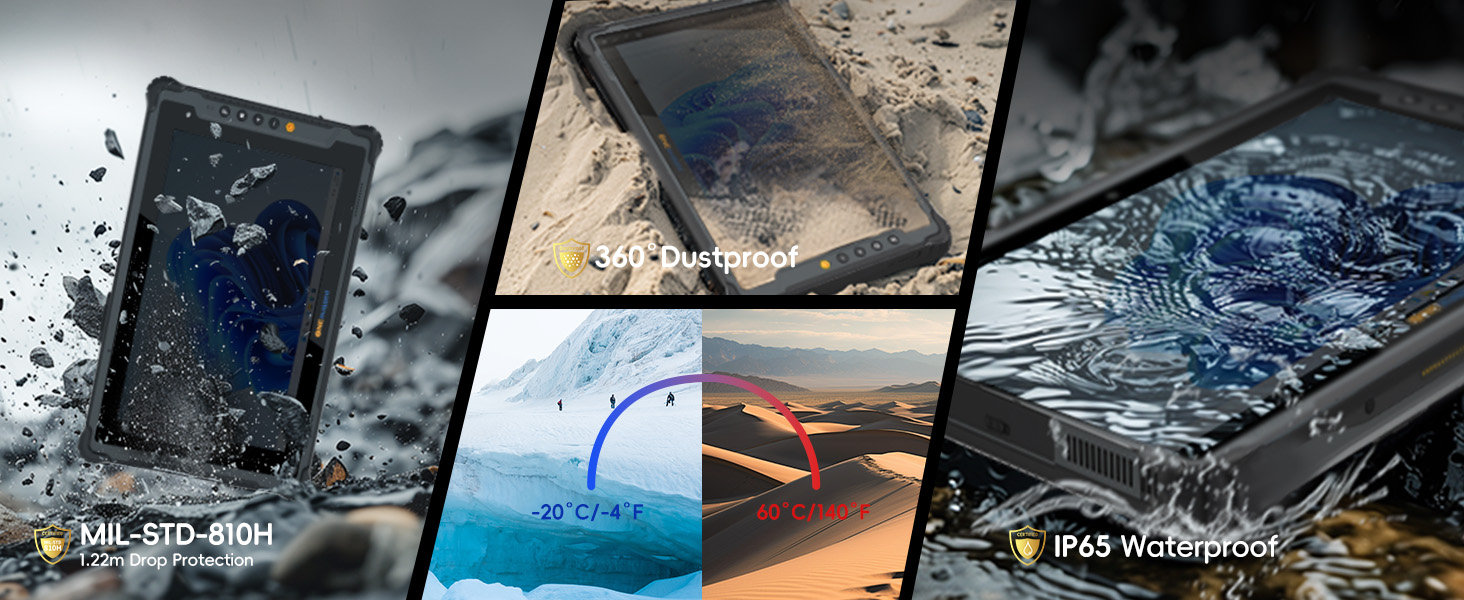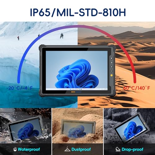 - [ IP65 + MIL-STD-810H ] – Professionally certified with IP65 & MIL-STD-810H tested, it can withstand accidental drops from up to 4 feet, powerful water jets, extreme temperatures, moisture and dust without any damage. This industrial tablet is perfect for fieldwork, construction sites, and warehouses and explorers, ensuring efficient task accomplishment in challenging environments.