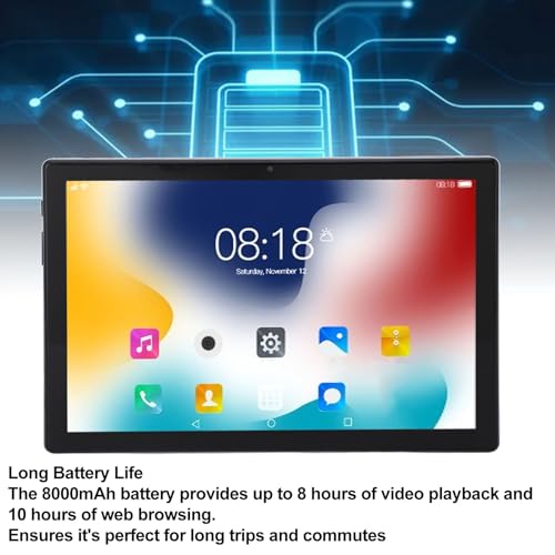- LONG BATTERY LIFE: The for Android tablet comes with an 8000mAh battery that delivers up to 8 hours of video playback and 10 hours of web browsing, ensuring that it's for long trips and commutes.The Type C charging port supports fast charging, so you can quickly get back to using the tablet when you need to read, watch a movie, play games, music, study, or work.