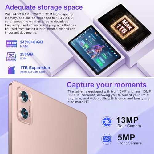 - PROCESSOR AND CAMERA: The tablet is equipped with octa-core processor, which supports multi-tasking and excellent overall performance. dual camera with 5MP front and 13MP rear can easily capture exciting moments, video calls are more high-definition