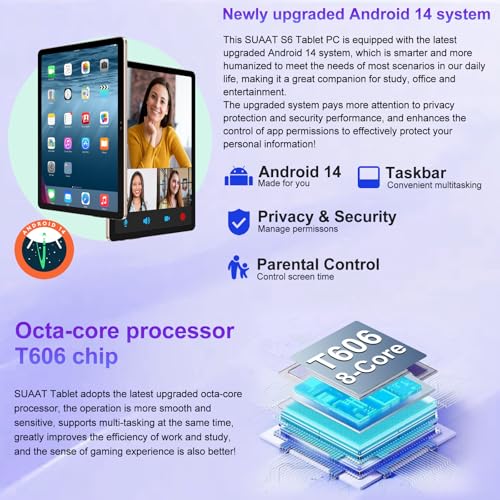 - Excellent performance: 2025 Tablet PC equipped with the Android 14 system, the use of high-quality T606 chip, running more smoothly, greatly improving the efficiency of the work, with a face unlock function privacy protection is stronger