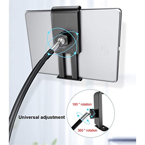 - Multi-Angle&Height Adjustment : The phone tablet stand has a flexible gooseneck arm with a 360-degree swivel ball head that provides a multi-directional viewing angle. You can easily adjust to a comfortable angle under any circumstances for convenience and versatility for every viewing.