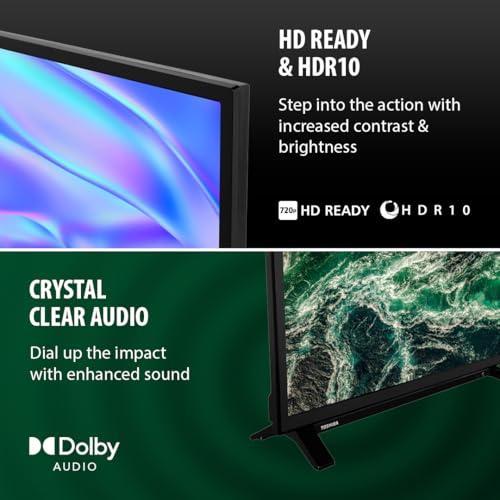 Toshiba 24″ WV2553DB HD Ready Smart VIDAA TV, HDR, Freely, Disney plus, Prime Video, Netflix, Dolby Audio, Works with Alexa, Works with Google Assistant, VIDAA Voice 2025 [Energy Class G]