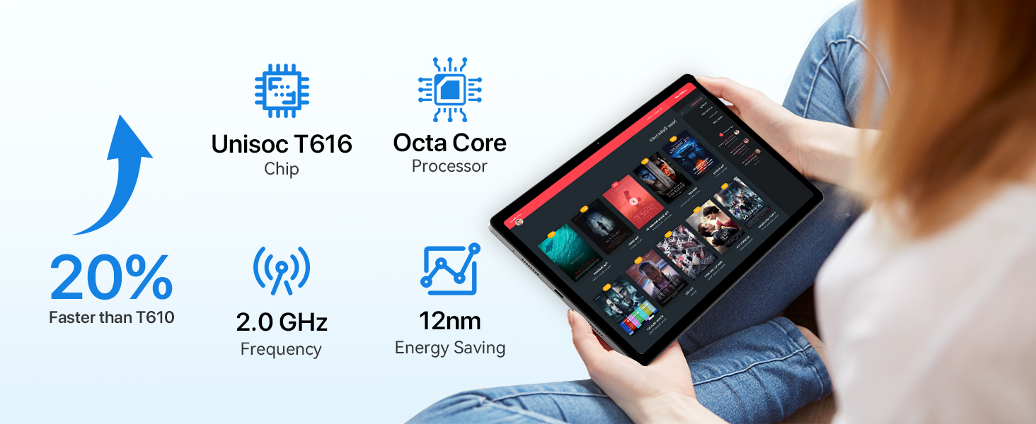 - & : Running on Android13 with an Octa-core Unisoc T616 processor, the UMIDIGI tablet handles multitasking effortlessly. And this Android 13 tablet introduces updated privacy controls,which helps protect user data during heavy usage—perfect for both entertainment and productivity