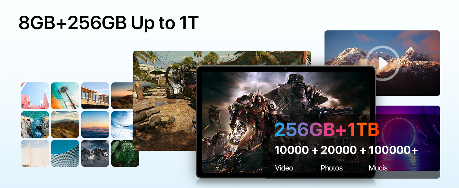 - + : With 16GB of RAM (8GB physical +8GB virtual) and 256GB of built-in storage (expandable to 1TB), this tablets handles everything with ease. Enjoy smooth multitasking and endless space for your media and apps, expandable options up to 1TB, you'll never have to worry about running out of space for your photos, videos, and files. How to expand virtual memory? Go to Settings – Memory Expansion – Set up Virtual RAM