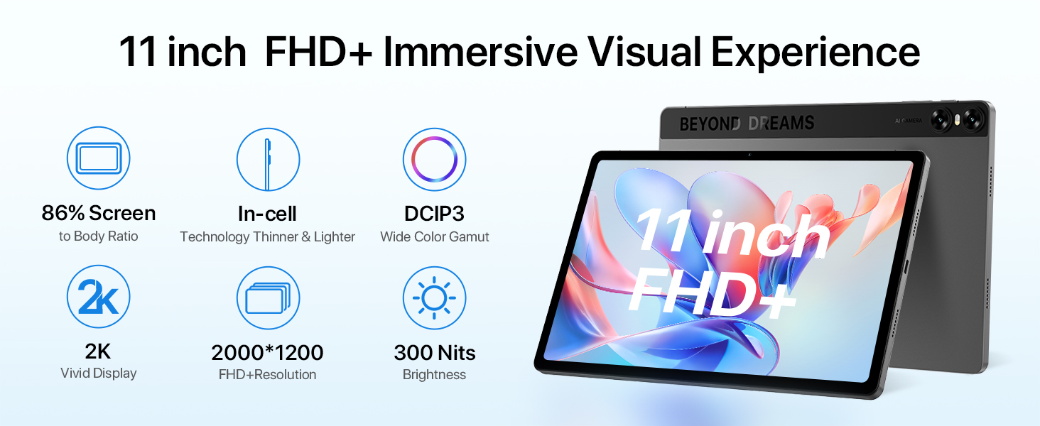 - : Meet the UMIDIGI A15 tablet—a large Android tablet with an 11-inch 2K display (2000×1200), 420 nits brightness, and a handy stylus for effortless tapping, swiping, and note-taking. Big screen, bold view—just what your day needs!