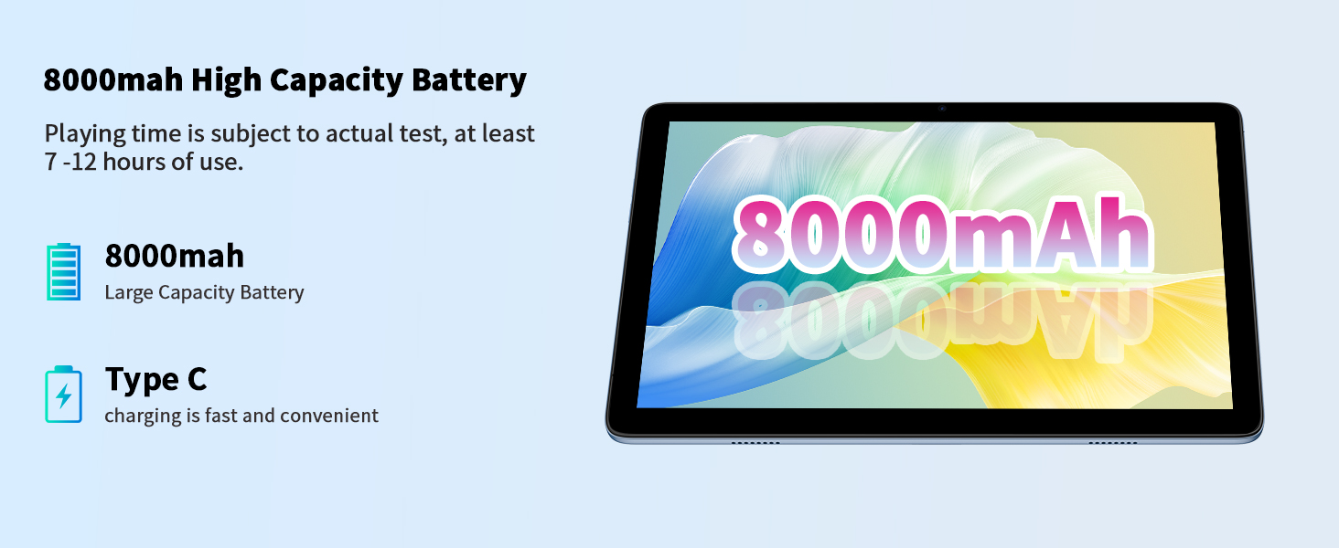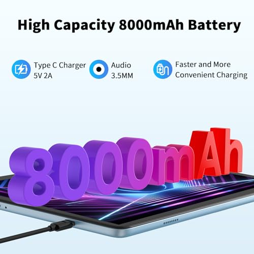 - 【10 inch Screen + 8000 mAh + Dual Speakers】Android Tablet has a 10-inch IPS full color display with brilliant colors and comfortable touch. Built-in 8000 mAh high-capacity battery, combined with efficient operation system and energy-saving system, the tablet can run for a long time. TAB 11 android tablet has 2 speakers, the sound bright and clear, enjoy the surround visual and auditory experience.
