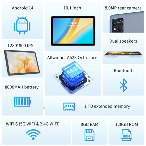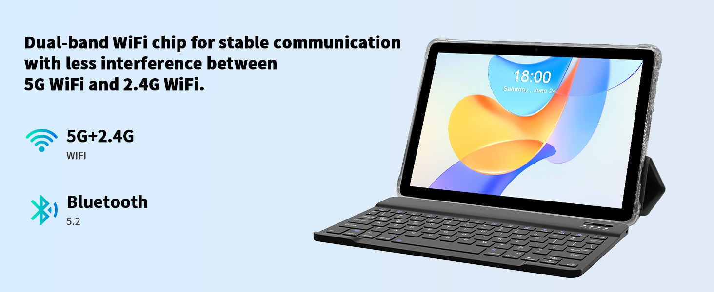 - 【Rapid Wireless Connectivity】With support for 5G/2.4G dual-band WiFi 6 and Bluetooth 5.2, you can enjoy fast and stable wireless connections to networks and other devices. Whether you're streaming movies, downloading large files, or connecting wireless peripherals, this tablet pc ensures a seamless and reliable connection experience.