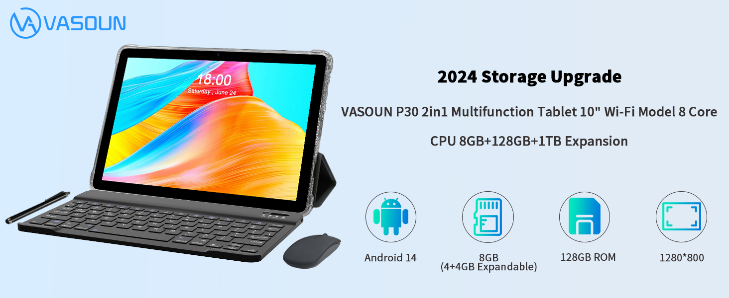 - 【8GB(4+4) RAM+128GB ROM+Octa-Core Processor】VASOUN TAB 11 Tablet has a huge 8GB RAM+128GB ROM memory, and you can add an SD card to expand the memory up to 1TB. This tablet is equipped with a high-performance octa-core processor with a frequency of up to 2.0GHz, which ensures that multiple apps can run smoothly for a faster and more stable running speed.