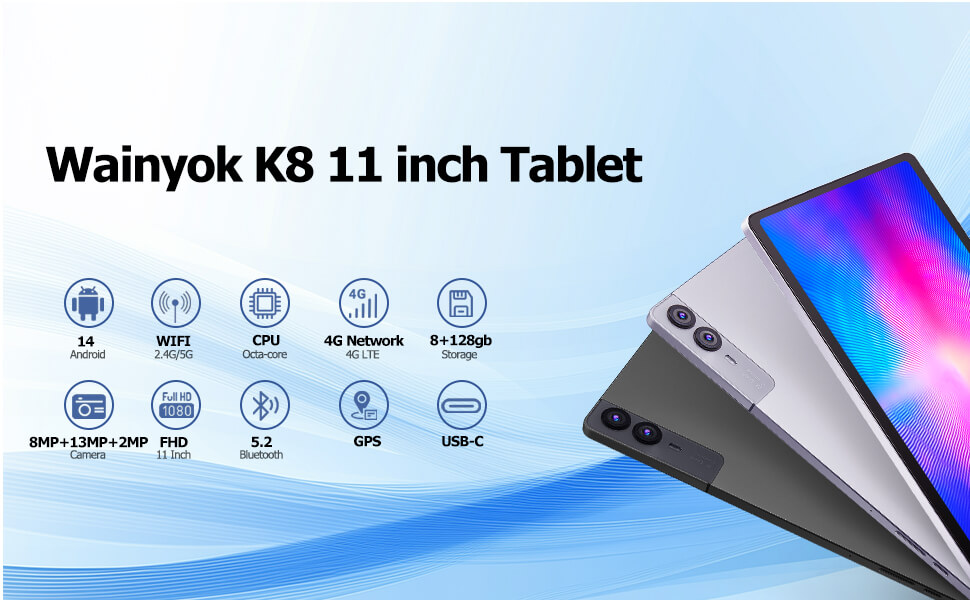 Wainyok 11 Inch Android 14 Tablet: K8 4G LTE 5G