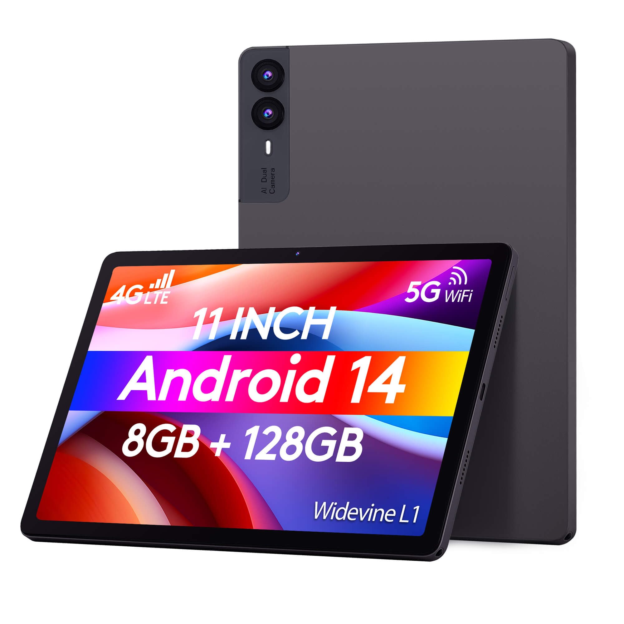 Wainyok 11 Inch Android 14 Tablet: K8 4G LTE 5G WIFI Tableta | 8GB RAM + 128GB ROM (1TB TF) | Octa-Core | Widevine L1, FHD Display, 13MP+8MP. 7000mAh, GPS (Gray)