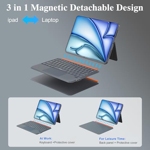 - Magnetic 3 in 1 Design:Detachable Magnetic Keyboard Case Stand,strong magnets secure stable attachment.Instantly transforms iPad case into a typing keyboard or adjustable viewing stand.Suitable for movies,video calls and meetings.Ideal for office,travel,and outdoor adventures.PU Leather full-edge coverage,protects tablet from drops and scratches