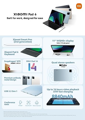 Xiaomi Pad 6 Tablet 6GB RAM 128GB ROM WiFi Version 11 inches 8840mAh, Gravity Gray (UK Version + 2 Years Warranty)