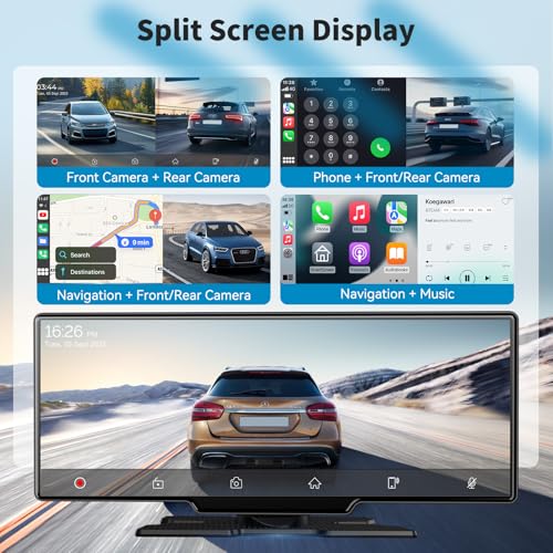 10.26″ Carplay Screen for Car, Car Tablet Pro Max 2025 Car Play Screen with 4K Front and 1080P Rear Camera, Wireless CarPlay Android Auto Mirror Link AUX FM Bluetooth 64G SD Loop Recording