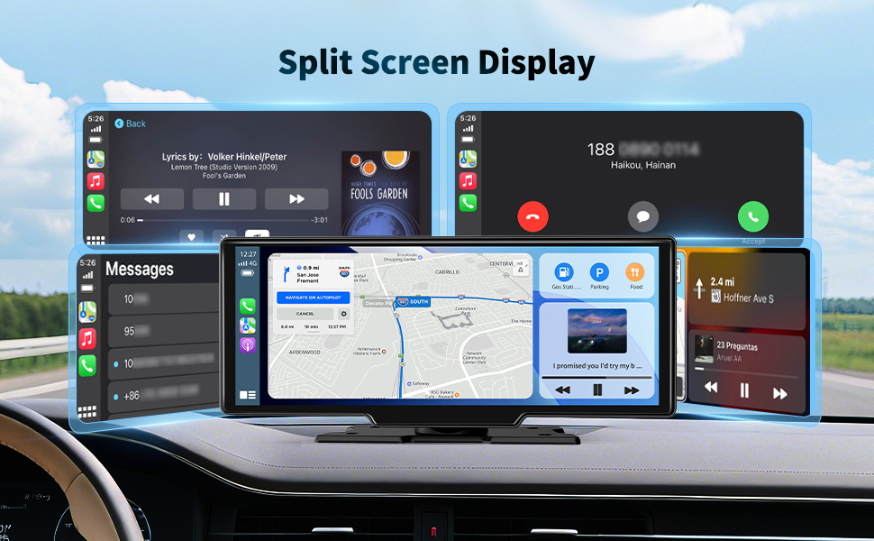 - 【Adjustable Dual Screen & Intelligent Brightness Adjustment】When using CarPlay or Android Auto, you can switch between full-screen or half-screen modes at will, and split-screen presentation can meet various usage scenarios. The car tablet pro max contains a photosensor, through which the car play can display different brightness according to different environments, providing a comfortable visual experience.
