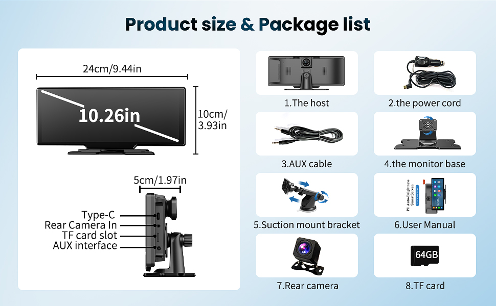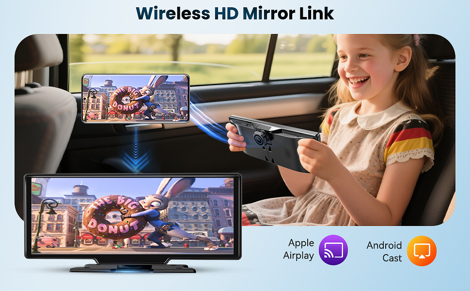 - 【Mirror Link】The car play screen is a 10.26-inch IPS high-definition touchable screen, which reflects quickly and no delay, and 1600*600 high-definition picture quality. Connect Airplay/Android Cast through the WIFI of your Android phone or IOS system phone, you can realize wireless mirror screen projection, and enjoy the visual and auditory feast brought by car tablet
