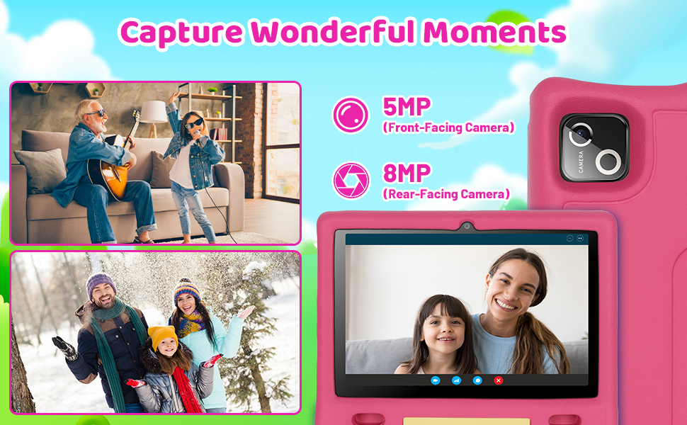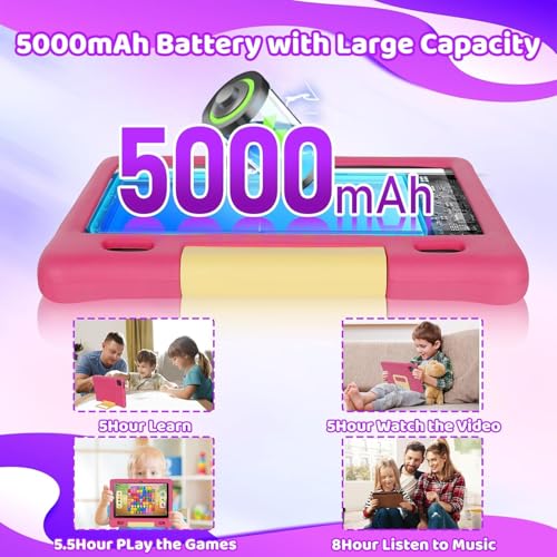 - 【Multifunctional】The kids tablet is equipped with a 1280×800 HD screen, 5000 mAh battery, low power processor, 5MP front camera and 8MP rear camera, wifi, bluetooth and two speakers to meet the requirements of online learning and video calls. Our kids tablet is covered by a one-year warranty. If technical problems occur while using the product, you can always contact our customer service