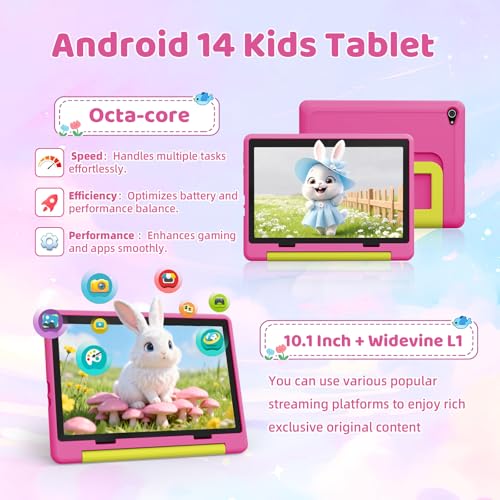 - 【Equipped with Android 14 & 2.0GHz Octa Core CPU】This 10 inch kids tablet runs on the latest Android 14 platform, significantly optimizing system smoothness and reducing power consumption. Android 14 also brings enhanced privacy protection features, finely controlling application permissions and personal data, allowing parents to easily manage application permissions and child data security. Its built-in 2.0 GHz octa core processor ensures strong performance, eliminates lag, and supports seamless multitasking.