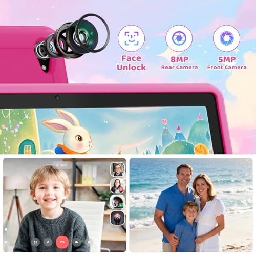 10 Inch Kids Tablet, Android 14 Tablet for Kids With 14GB+64GB+1TB Expandable, Octa-Core Processor, Face ID, 5MP+8MP, 5000mAh, Parental Control, 5G WiFi 6, BT 5.3, Protective Case,Pink