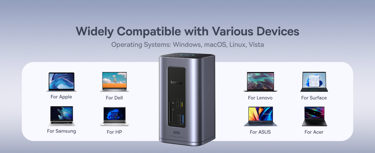- 【Powerful 100W PD Charging】 The charger is not included. Keep your devices powered all day long with our intelligent 100W power delivery. Our usb docking station smartly allocates power based on connected devices, ensuring fast, efficient, and safe charging every time.