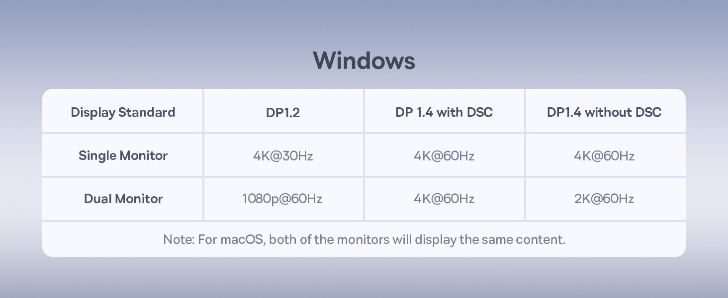 - Note: MacOS systems do not support dual-display mode, only can extend one display with connected monitors under the extension mode