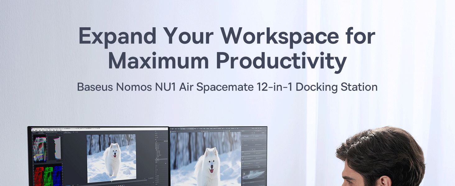 Baseus Docking Station Nomos Win Air 12 in 1, Dual Monitor Laptop Dock, 2 * 4K HDMI, 10Gbps USB A/C Ports, Gigabit Ethernet, PD 100W, USB C Docking Station for Dell/HP/Lenovo/Asus/Ace